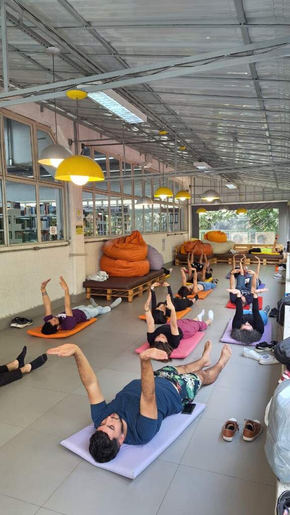 - Oficinas de alongamento, pilates e exercícios de respiração consciente;